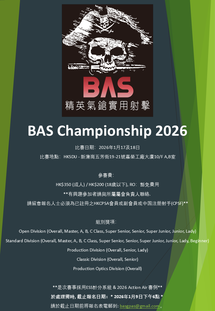 2026年1月17及18日舉辦 < BAS Championship 2026 >,詳細資料如下: